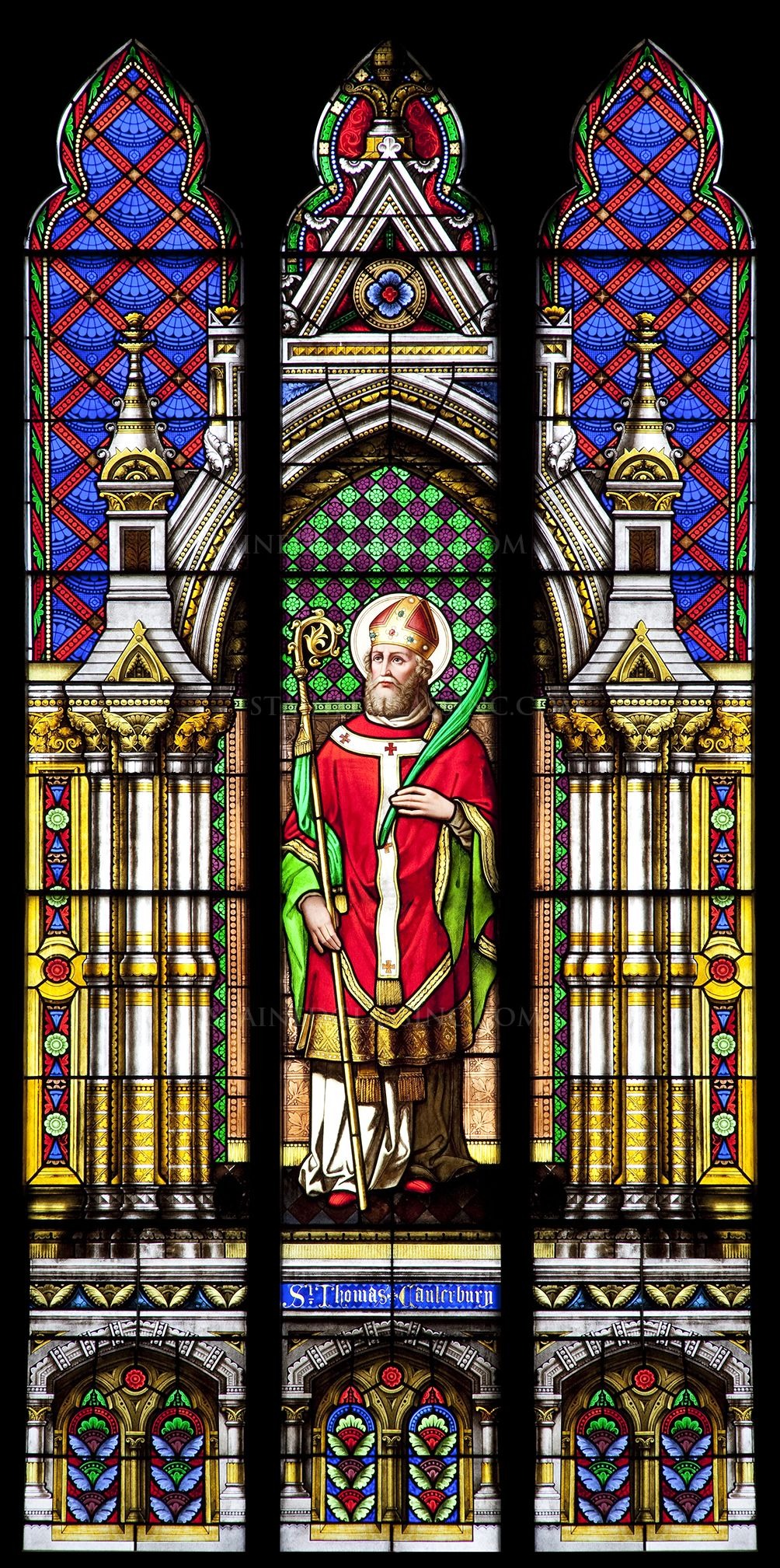 一些邪惡的朝臣將此話理解為國王會樂見他們殺死托馬斯。這些人秘密前往坎特伯雷,並於1170年12月29日,正當晚禱唱頌之時,來到大教堂。於是與托馬斯同在的聖職人員預見到有人要謀害他的性命,便將門閂上。但他打開了門,說:「上帝的聖殿不可成為堡壘,為了上帝教會的緣故,我願意死。」然後他對那些兇手說:「我奉全能上帝的名命令你們,不可傷害我的任何子民。」當他們拔劍襲來時,他跪下,將自己託付於上帝、聖母、聖德尼以及坎特伯雷座堂其他神聖主保。於是他們在聖母祭壇與聖本篤祭壇之間殺害了大主教,然後逃走。他的遺體被他們的劍砍得體無完膚,橫臥在地面上。當時一場猛烈的雷暴爆發,儘管人群擠滿了大教堂,卻無人敢觸碰他的遺體,眾人的恐懼是如此強烈。但沒有人懷疑托馬斯是為保衛教會抵禦國家侵凌而殉道的,整個歐洲立即要求將他封聖。此事於1173年2月實現。1174年7月,在聖人的聖髑由大主教史蒂芬·朗頓從地下聖堂遷移到坎特伯雷大教堂大祭壇後方的宏偉聖龕後,當時歐洲最有權勢的君主亨利國王在這位殉道者的墓前公開懺悔。此後,坎特伯雷聖托馬斯的聖龕成為全世界最受歡迎的朝聖地之一,在那裡領受了許多來自上帝的恩寵,直至1538年,英王亨利八世下令掠奪聖龕,並將聖髑取走。1888年,在地下聖堂發現了遺骸,許多有良好判斷力的人相信這些就是聖托馬斯的神聖聖髑。他被尊崇為英格蘭教區聖職人員的天上主保。